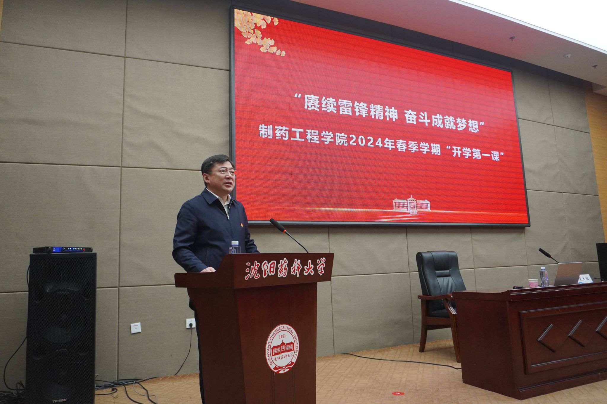 为贯彻党的教育方针,落实立德树人根本任务,引领学院师生弘扬雷锋精神,以昂扬的精神面貌奋进新学期,球王会体育官方网于3月7日在南校区图书馆国为学术报告厅举办了以“赓续雷锋精神 奋斗成就梦想”为主题的新学期“开学第一课”活动。本次活动邀请北部战区总医院临床药师党大胜为学院师生授课。校党委副书记关雪峰、学院领导班子成员、全体辅导员以及师生代表参加活动。