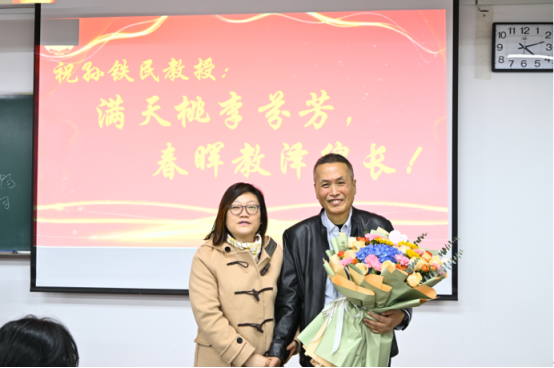 学院党委书记李哲代表球王会体育官方网向孙铁民教授送上鲜花和祝福,感谢孙教授教学科研工作中对学院发展做出的贡献,希望年轻教师以孙教授为榜样,共同为学院的发展不断努力。