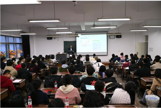 在课堂上,新增了许多特殊的“同学”——校长、研究生院院长、无涯书院院长、球王会体育官方网领导班子成员、药物化学教研室的同事们,还有学院青年教师、毕业学生代表、在读研究生等等近50人济济一堂,与全体同学共同聆听了孙老师最精彩的一课。