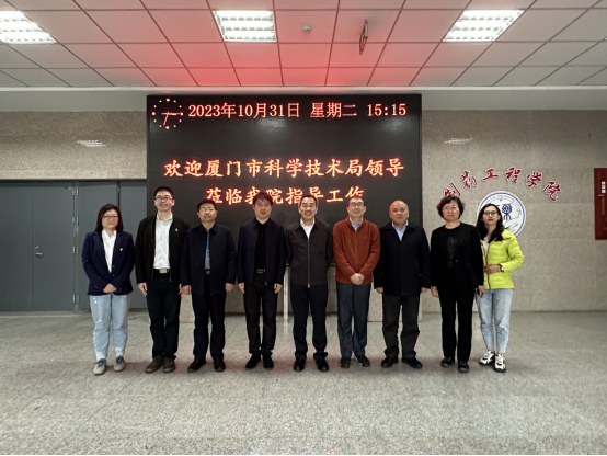 10月31日,福建省人民政府参事、致公党厦门市委一级巡视员徐平东,厦门市科学技术局党组成员、副局长曹伟民,厦门翔安创新实验室成果转化办主任谢靖凡,厦门市科学技术局招商办专员吴晓银一行4人来到球王会官网,就推动双方开展新药协同创新进行调研。学院院长刘洋、副院长赵燕芳、副院长郭永学、药物化学系主任刘丹、化学实验中心主任郭春参加调研。