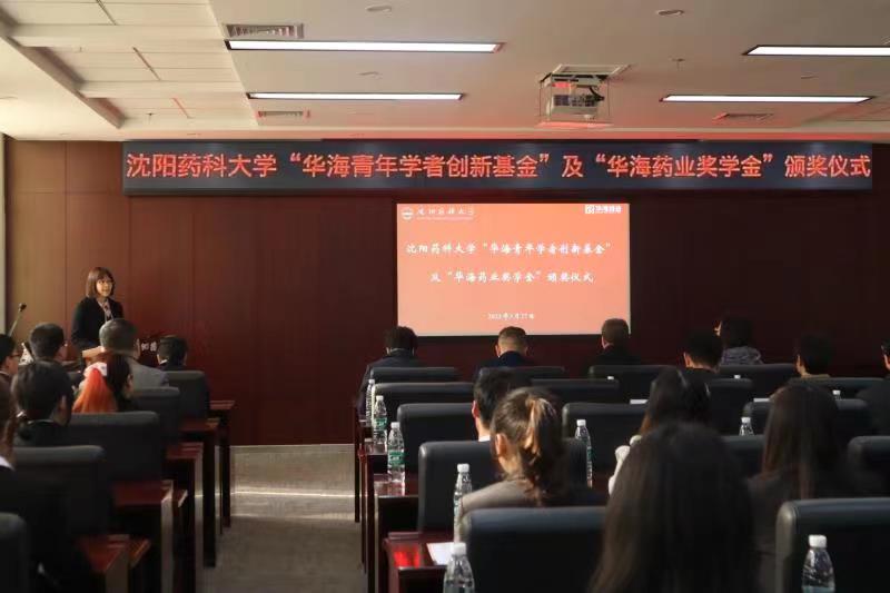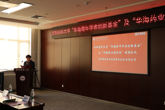 药学院党委书记杨奇志宣读了《球王会体育官方网关于颁发“华海青年学者创新基金”及“华海药业奖学奖”的决定》,公布了2021年和2022年“华海青年学者创新基金”及“华海药业奖学奖”评选结果,勉励获奖师生努力奋斗,锐意创新,为祖国医药事业发展做出更大贡献。