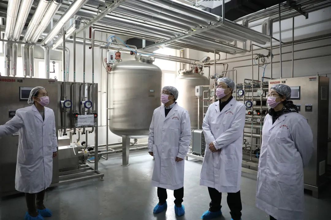 高明宇一行首先来到球王会体育官方网药品GMP实训中心,实地参观调研“口服固体制剂车间、生物制剂车间、小容量注射剂车间、中药提取物生产线”4条生产线和公用工程模块,深入了解药品GMP实训中心生产线的建设及使用情况。随后,深入球王会体育官方网楼参观调研我校唯一的“教育部重点实验室”,并细致询问实验室研究方向和近几年取得的成果,学院院长赵临襄介绍了制药楼宇设施和校友文化墙建设情况。