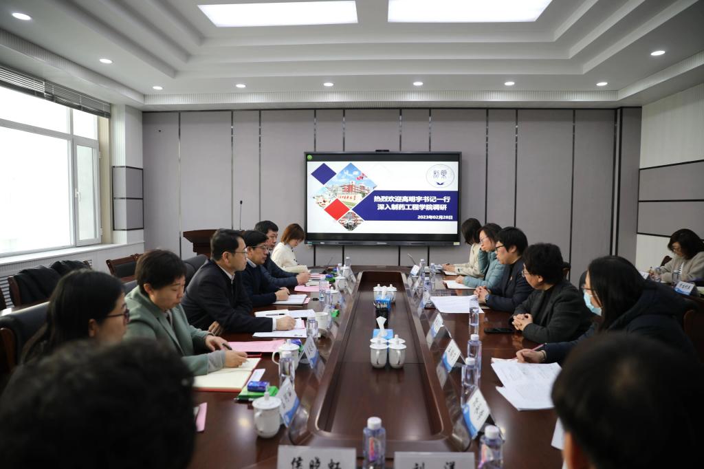 2月28日上午,校党委书记高明宇一行深入球王会体育官方网调研指导工作。党委常委、副校长宋少江,党委常委、宣传部部长、校友会办公室主任王延风,党政办公室主任沈伟,组织人事部副部长吕阿丽和党政办公室副主任张达盼陪同调研。学院领导班子、系主任、教研室主任、辅导员和学生代表参加调研。