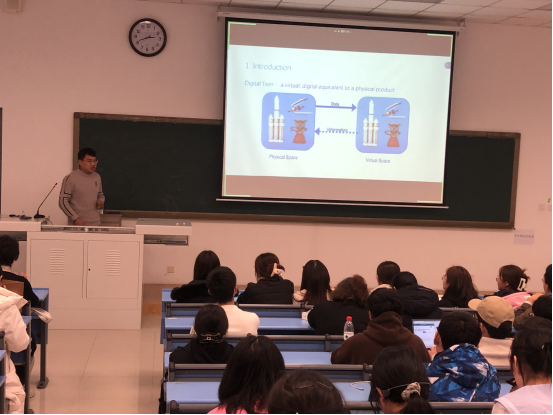 最后,康程铭博士分享了题为“数字孪生技术在工程中应用研究”学术报告。他针对数控机床主运动部件时变误差影响加工精度的关键科学问题,提出基于数字孪生技术的数控机床运动轴时变误差预测与补偿概念,充分利用数字孪生技术在预测实体变化趋势方面的优势,建立了一种新颖的运动轴的时变误差预测建模与补偿方法,并详细介绍了数字孪生体的物理实体层、数据传输层、功能执行层和应用服务层的功能。