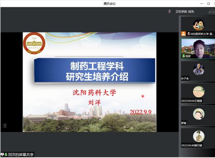 研究生专业教育会是新生入学教育的重要内容之一,帮助新生了解校情院史,弘扬沈药精神,传承红色基因。同时,让研究生新生对于学校、学院及所学专业有了更深刻、更全面的认识,引导新生尽早规划自己的研究生生活。相信新同学们定会牢记老师们的谆谆嘱托与殷切期望,努力成为有理想、有追求、有担当、有作为、有品质、有修养的新时代六有青年。