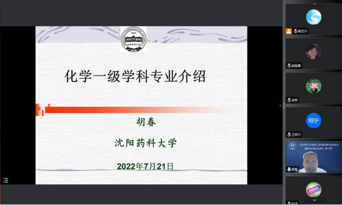 本次会议邀请了药物化学系主任刘丹教授、制药工程学科副主席刘洋教授、化学学科主席胡春教授、化学工程与技术学科副主席郭永学教授进行了对应分科的招生宣讲,从专业角度为有考研意愿的同学带来权威的考研解读,为考生们线上答疑解惑,助力同学们考研方向选择。同时,会议特别邀请了研究生院学位管理科科长杨亚明老师为参会同学做出招生政策方面的解答。学院领导班子全体成员参加了本次会议,会议由研究生辅导员杨艺宁主持。