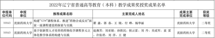 5月24日,辽宁省教育厅发布了《辽宁省教育厅关于公布2022年辽宁省普通高等教育(本科)教学成果奖获奖名单的通知》(辽教函[2022]68号)。球王会体育官方网由翟鑫教授等组织申报的《构建“1234”课程体系,推进“药物合成反应”国家一流课程建设的探索与实践》、由赵燕芳教授等组织申报的《基于创新型人才培养的药物化学课程多元立体化教学体系的构建与实践》荣获二等奖。