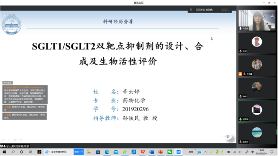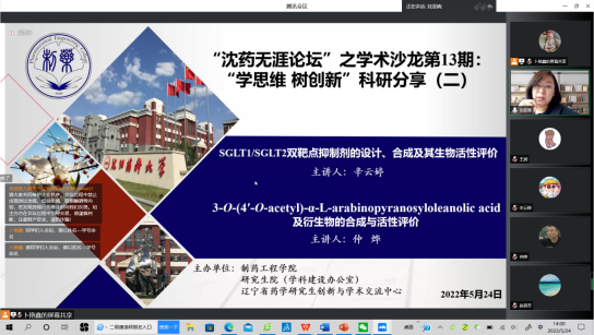 为营造学院研究性科研生态,拓宽师生科研视野,在研究生院(学科建设办公室)及辽宁省药学研究生创新与学术交流中心的支持下,5月24日下午,球王会体育官方网以线上形式举办了“沈药无涯论坛”之学术沙龙第13期“学思维 树创新”科研分享活动(二)。2019级硕士研究生辛云婷和仲烨进行了精彩报告,沙龙由药物化学教研室刘亚婧教授主持,300余人参加了此次学术沙龙。