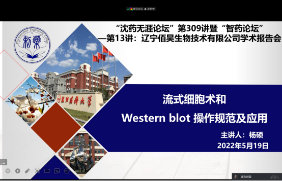 5月18-19日,球王会体育官方网、辽宁佰昊生物技术有限公司、研究生院、辽宁省药学研究生创新与学术交流中心联合举办了“沈药无涯论坛”第308-309讲暨“智药论坛”第12-13讲,邀请辽宁佰昊生物技术有限公司杨硕和王爽做了题为“细胞培养注意事项、操作流程及功能检测”和“流式细胞术和Western blot操作规范及应用”的学术报告。会议由球王会体育官方网药物化学系主任刘丹教授主持,400余人次参加了此次学术会议。