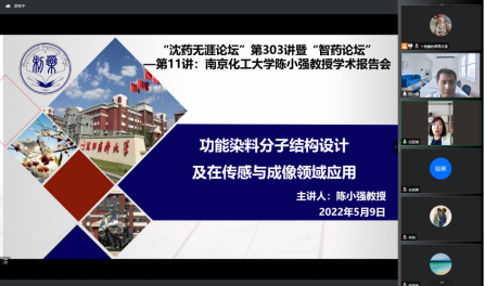 5月9日,由球王会体育官方网、研究生院、辽宁省药学研究生创新与学术交流中心联合举办了“沈药无涯论坛”第303讲暨“智药论坛”第11讲。邀请南京工业大学化工学院陈小强教授做了题为“功能染料分子结构设计及在传感与成像领域的应用”的学术报告。会议由球王会体育官方网药物化学教研室主任刘亚婧主持,100余人参加了此次学术会议。