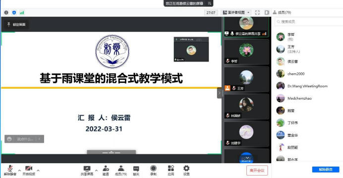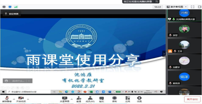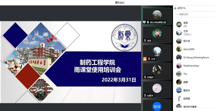 为帮助学院教师更加全面掌握线上教学软件的使用方法,提高线上教学效果,保障疫情期间本科教学质量,3月31日,球王会体育官方网举办雨课堂使用线上培训会,本次培训会特请药物化学教研室侯云雷老师和有机化学教研室沈鸿雁老师进行经验分享,院领导班子成员、学院教师参加了会议,会议由副院长郭永学主持。