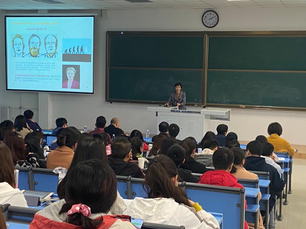 首先贾娴教授作了题为“基于化学—生物酶催化法的手性化合物合成及其应用”的报告,从绿色、环保、高效的视角向参会人员讲述了酶催化的发展现状及应用优势,分享了如何将生物酶催化法与基础化学研究方法有机结合在一起从而高效、高立体选择性地获得手性药物,并介绍了团队近期开展的相关研究工作。