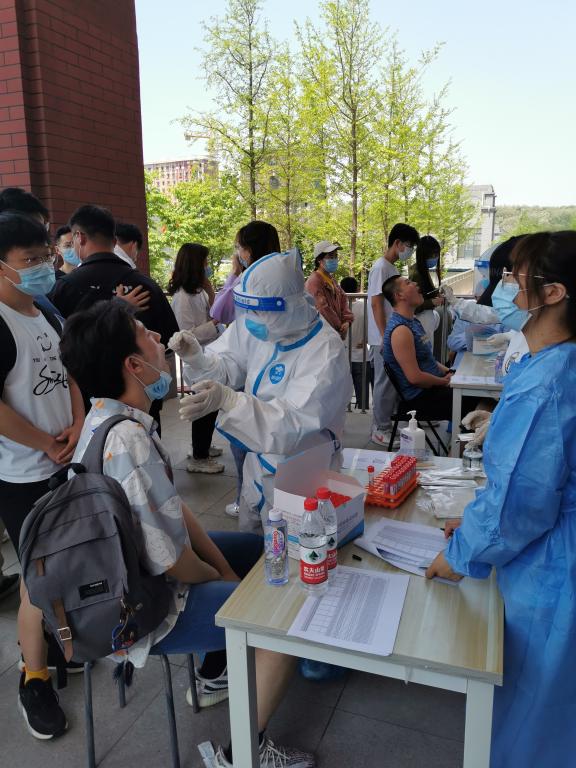 核酸检测采样工作于5月19日上午9时正式开始。学院在制药楼正门外合理划分区域,分别设置集合区、排队区及采样区,同时开通多条检测通道,所有待检人员严格遵守规定,提前集结,佩戴口罩,保持安全距离,分批分组检测后快速离场。