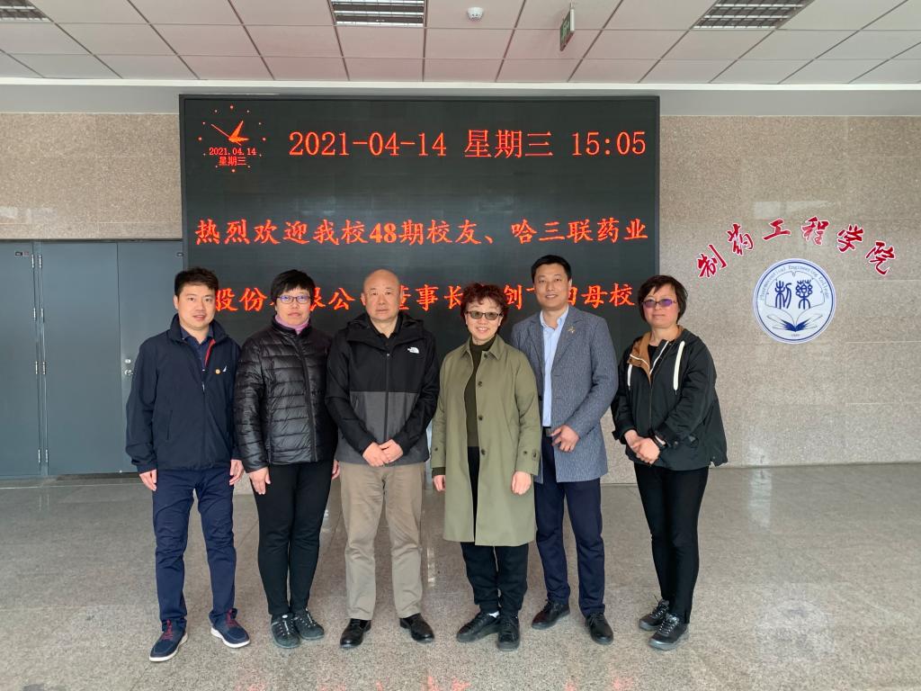 4月14日,我校48期校友、哈尔滨三联药业股份有限公司董事长秦剑飞、研发中心科学委员会秘书长胡玉庆一行访问球王会体育官方网,院长赵临襄、院党委书记李哲、副院长赵燕芳、副院长郭永学、院长助理刘洋热情接待秦总一行并在学院241会议室举行交流座谈。学院研究生辅导员一同参加了座谈。