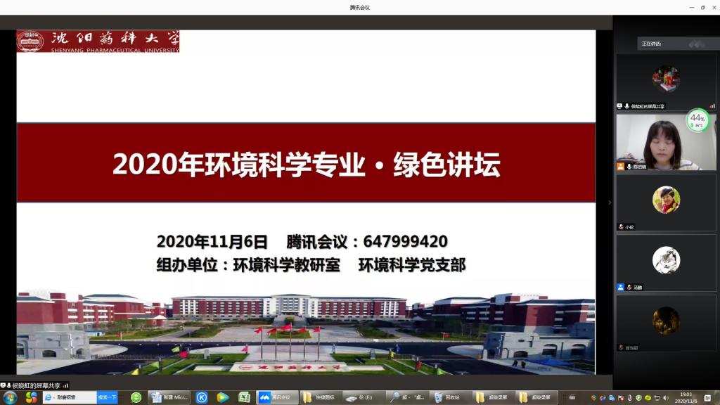 2020年11月6日19点,球王会体育官方网环境科学教研室组织举办了“环境科学专业绿色讲坛”云端分享活动。“绿色讲坛”活动是环境科学专业的特色活动,每年举行2次,邀请环境领域专家学者或优秀校友与环境科学专业学生近距离交流,对学生进行前沿性和创新性的环境教育,使学生拓宽专业视野,增强专业认同感和责任感。同时,更为发挥优秀校友的榜样作用,引导和激励在校生志存高远,奋发成才。