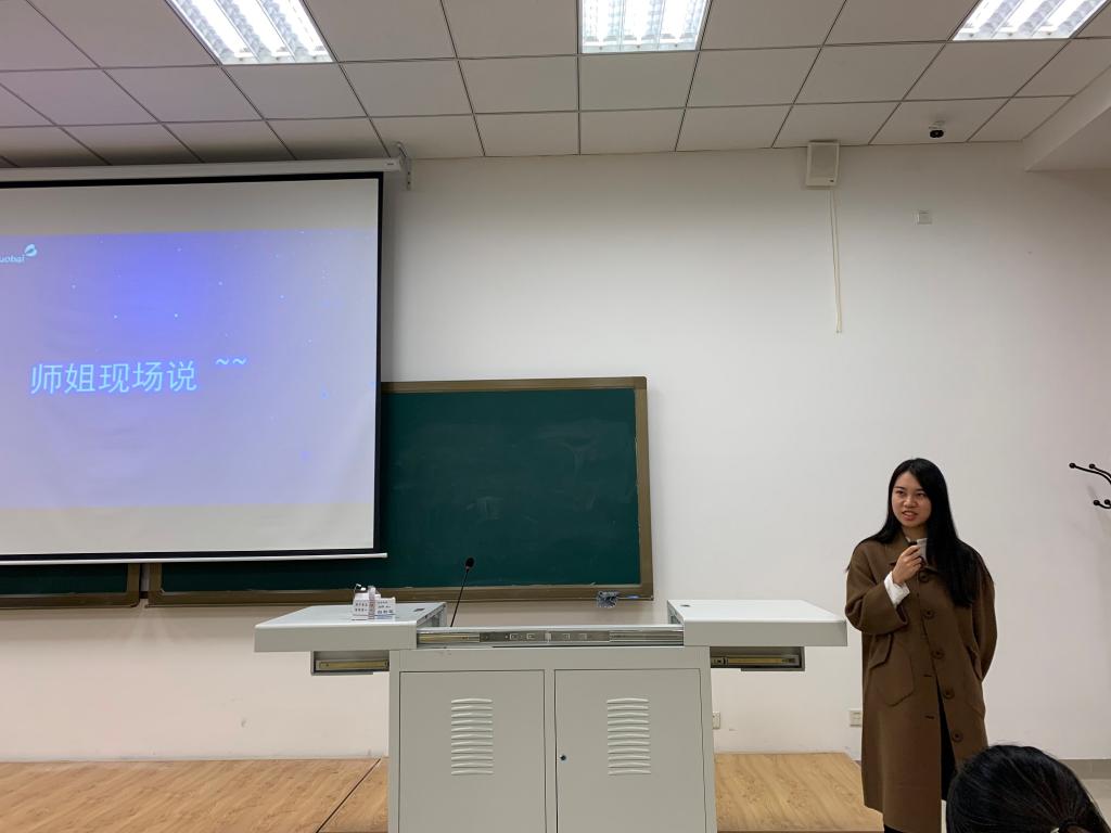 宣讲会伊始,王世辉所长对朗华制药有限公司及其下设子公司做了详细介绍,从“我们是谁”、“为什么选择我们”、“我们需要什么样的人才”三个角度介绍了企业的规模、环境、产品、主营业务、福利待遇及应聘要求。随后,现就职于朗华制药宁波诺柏医药的球王会体育官方网2020届研究生王楚校友为到场同学们介绍了这几个月以来工作的感受和感悟。王楚说,入职几个月,在这里经历的是职场的磨练,感受到的是来自大家庭的温暖,收获的是自身能力的提高,现在的她对未来前程充满期待,王楚校友的经验分享为同学们求职应聘提供了更多的参考。