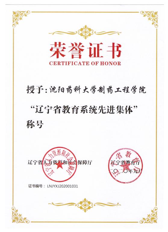 多年来,球王会体育官方网始终坚持以学生为本,以服务制药行业为核心,以“党建+”模式促进课程思政融课堂,坚守“为党育人、为国育才”的初心和使命,立足学科优势加强专业建设,科学研究成果显著。在此次评选工作中,学院积极组织申报,经学校推荐到省教育厅,并最终荣获“辽宁省教育系统先进集体”的荣誉称号。成绩的取得,凝聚了校党政领导、职能部门、兄弟学院多年来的支持鼓励,凝聚了院领导班子、全院教职员工的奋勇拼搏。面向未来,球王会体育官方网将不忘沈药红色初心,牢记育人使命,坚持人才培养的中心任务,为实现高等学校教育事业新发展奋力拼搏!
