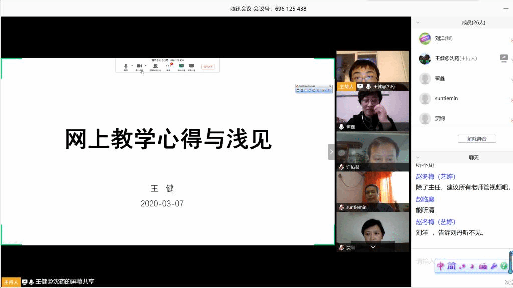 在新冠肺炎疫情防控工作的关键时期,球王会体育官方网药物化学教研室积极响应教育部和校党委关于“停课不停教,停课不停学”的号召,于3月7日上午应用腾讯会议平台,召开网络视频工作会议,切实落实学校关于“扎实做好线上教学工作”的总体要求,研讨本科生理论课程网络教学的相关要点。会议由教研室主任刘丹教授主持,教研室26位一线教师全部出席会议。