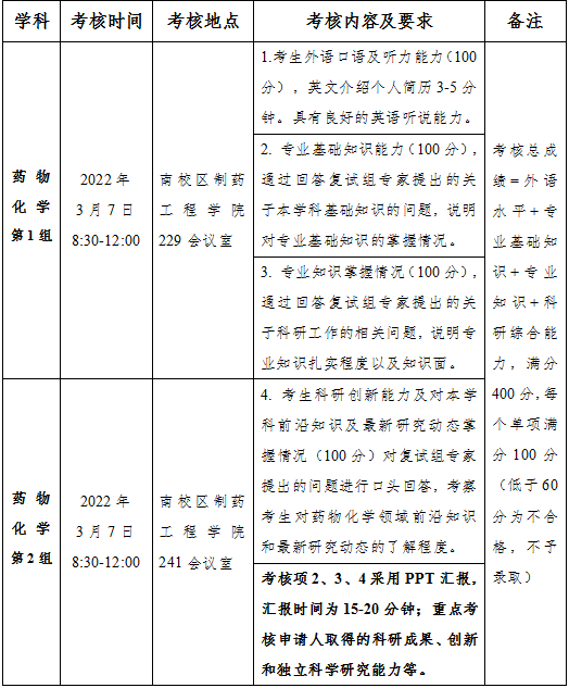 考核内容包括外语水平、专业基础知识、专业知识和科研综合能力四个模块,每个单项满分为100分,成绩低于60分为考核不合格不予录取。