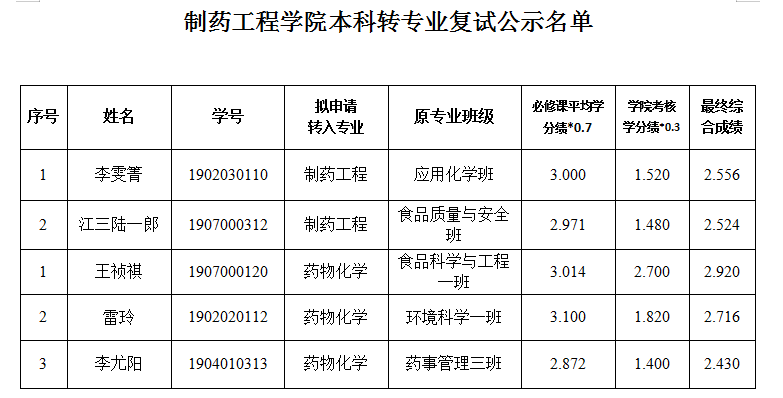 根据《球王会体育官方网本科学生学籍管理规定》(沈药大教务字〔2017〕33号)、《球王会体育官方网本科生转专业实施办法(试行)》(沈药大教务字〔2018〕34号)的有关规定。经学生自愿报名、转出学院审核、转入学院复试考核等工作程序, 现将球王会官网2019级本科生学业优秀类学生转专业拟录取名单公示,公示期三天,截止到2020年8月26日17:00。
