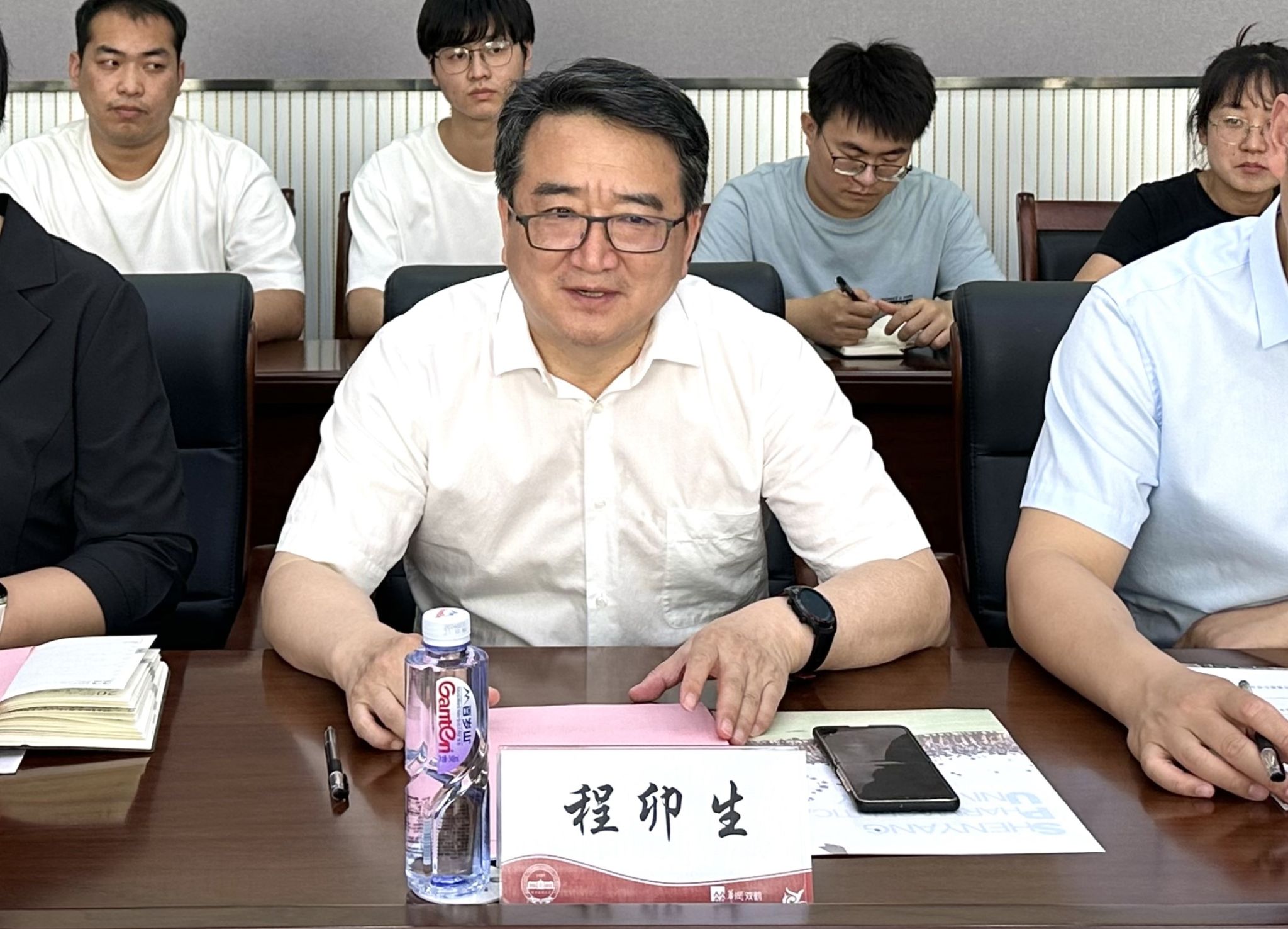 程卯生亲切会见了刘子钦一行,并代表学校在揭牌仪式上致辞。他对刘子钦一行到访学校推动合作表示热烈欢迎,对华润双鹤长期以来给予学校的信任与支持表示衷心感谢。他简要回顾了学校与华润双鹤的历史渊源以及双方多年来在人才培养、科学研究和基地建设等方面的合作情况,高度赞誉双鹤85年始终坚守初心,为中国革命胜利和医药事业高质量发展作出的重要贡献,并就校企未来的合作关键点提出了具体建议。他表示,沈药和双鹤有着相同的红色基因,是几十年的“亲密战友”,联合实验室的成立是校企产学研合作的又一次新突破,为双方进一步深化多领域交流搭建了新的桥梁和平台。他希望,校企以此次合作为契机,全力推进以企业为主导的产学研深度融合,在前沿科技创新、高层次人才培育和高端学术会议承办等多领域拓展合作方向、结出丰硕成果,为企业创新发展和生物医药产业建设提供人才支撑和智力支持。