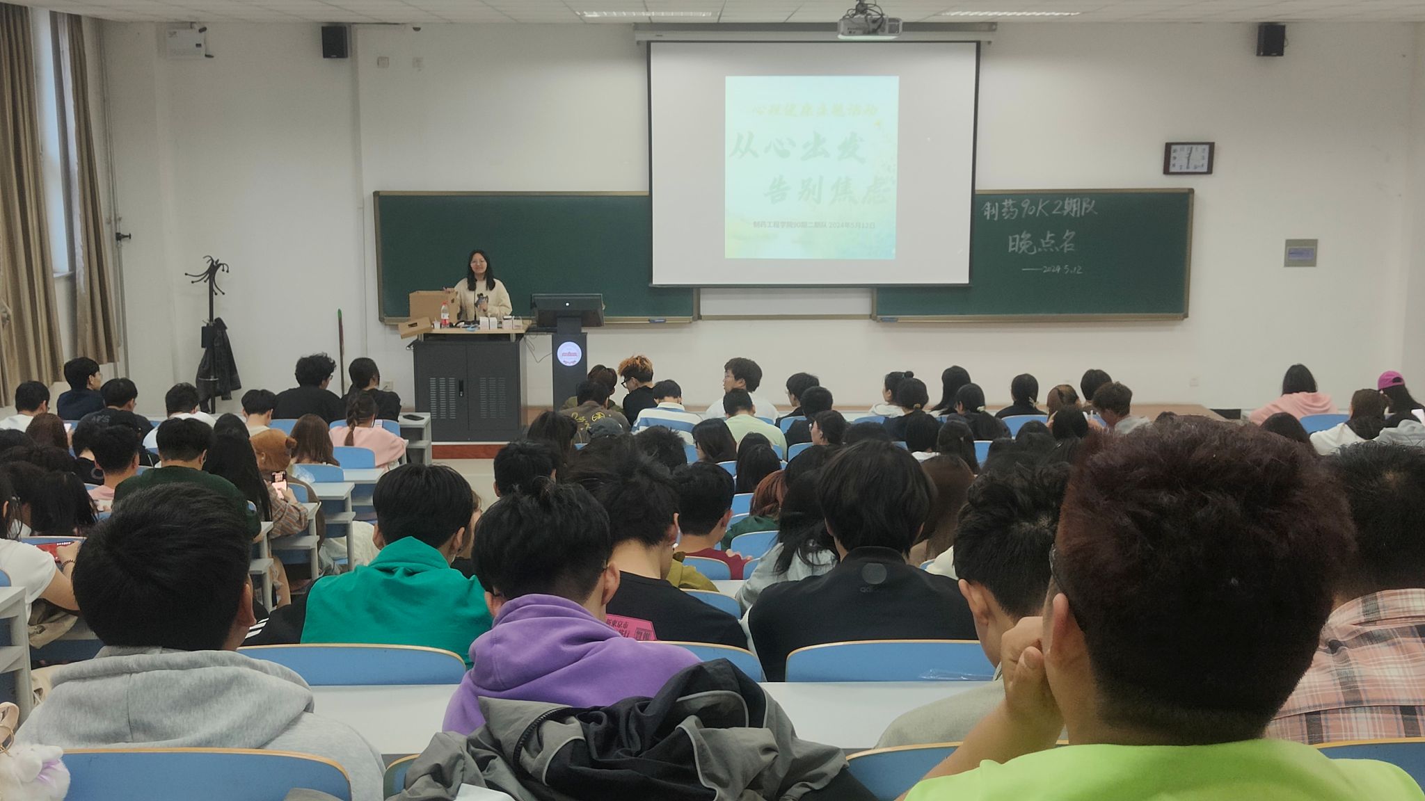 药化一班通过心理健康小课堂,为同学们科普什么是抑郁症、抑郁症的临床表现、抑郁情绪和抑郁症的区别,并引导同学们如何面对抑郁情绪、积极与抑郁症作斗争,并通过短片《我也可以的》鼓励同学们正确认识自己,积极乐观、勇敢的面对生活。药化三班以“拒绝精神内耗”为主题开展讲座,详细为同学们科普什么是精神内耗、为什么会精神内耗以及如何应对精神内耗,并于讲座结尾组织同学们一起玩“甩下烦恼”的小游戏,让同学从此拒绝内耗,合理面对生活中的压力。应用化学班以“拒绝精神焦虑”为题开展教育。通过漫画的形式展示什么是精神内耗、精神内耗的一些表现,引导大家如何合理应对精神内耗。