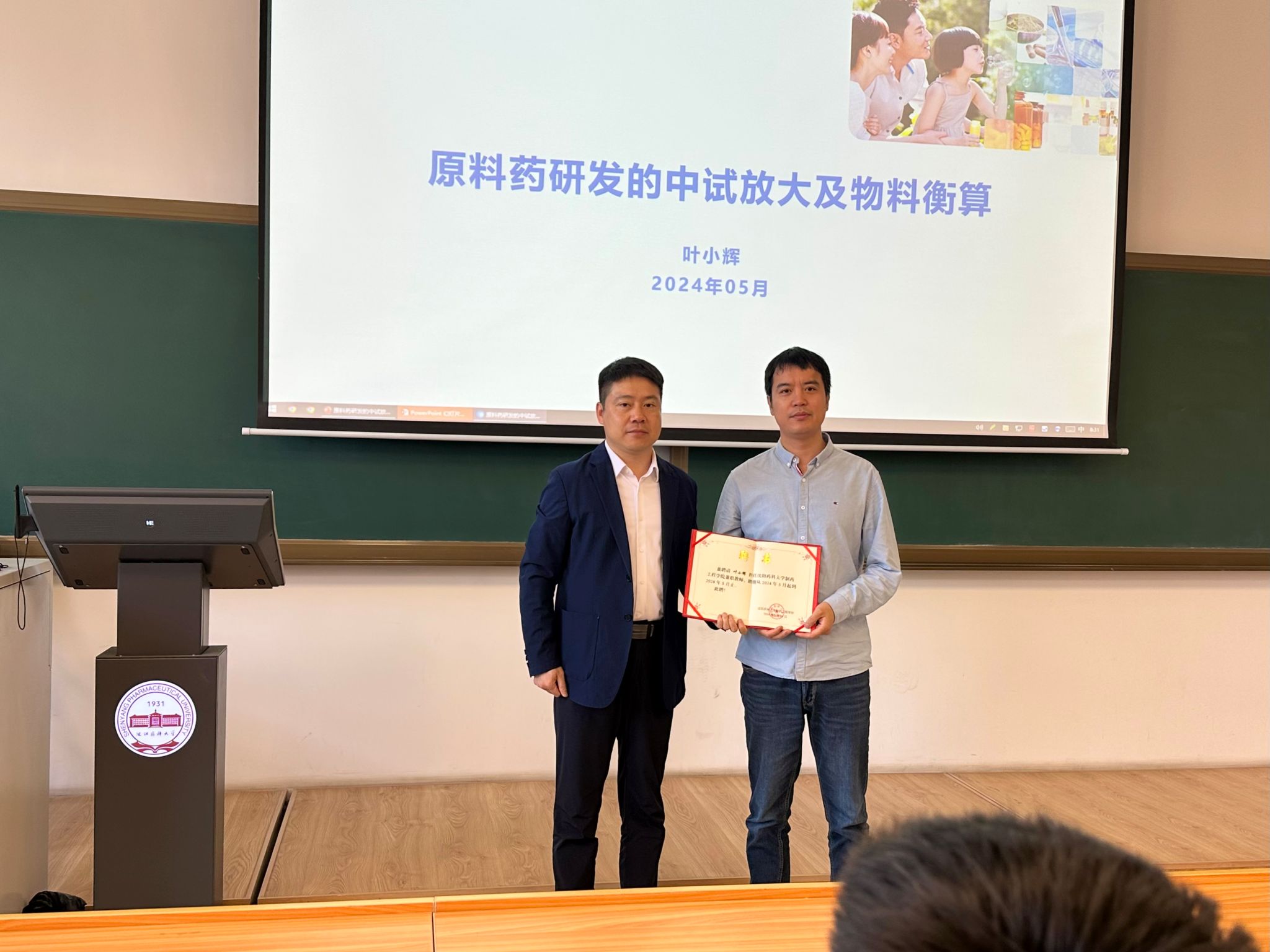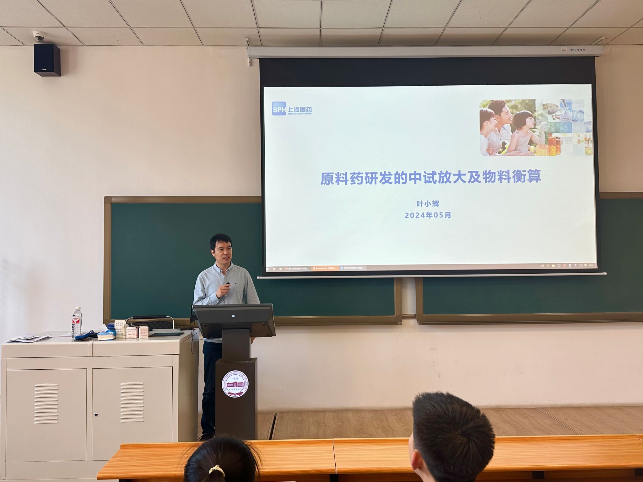 5月28日,球王会体育官方网聘请上海医药集团(本溪)北方药业有限公司高级工程师叶小辉为兼职教师,并给88K制药工程专业的同学们进行《化学制药工艺学》课程授课,学院院长刘洋、副院长刘丹共同聆听了课程。