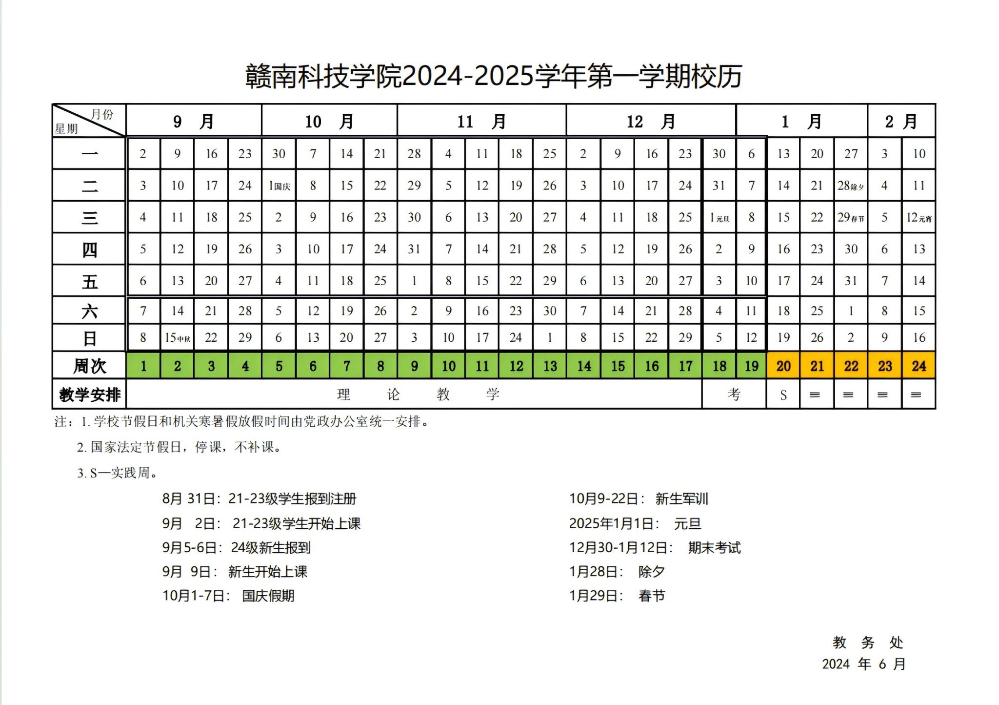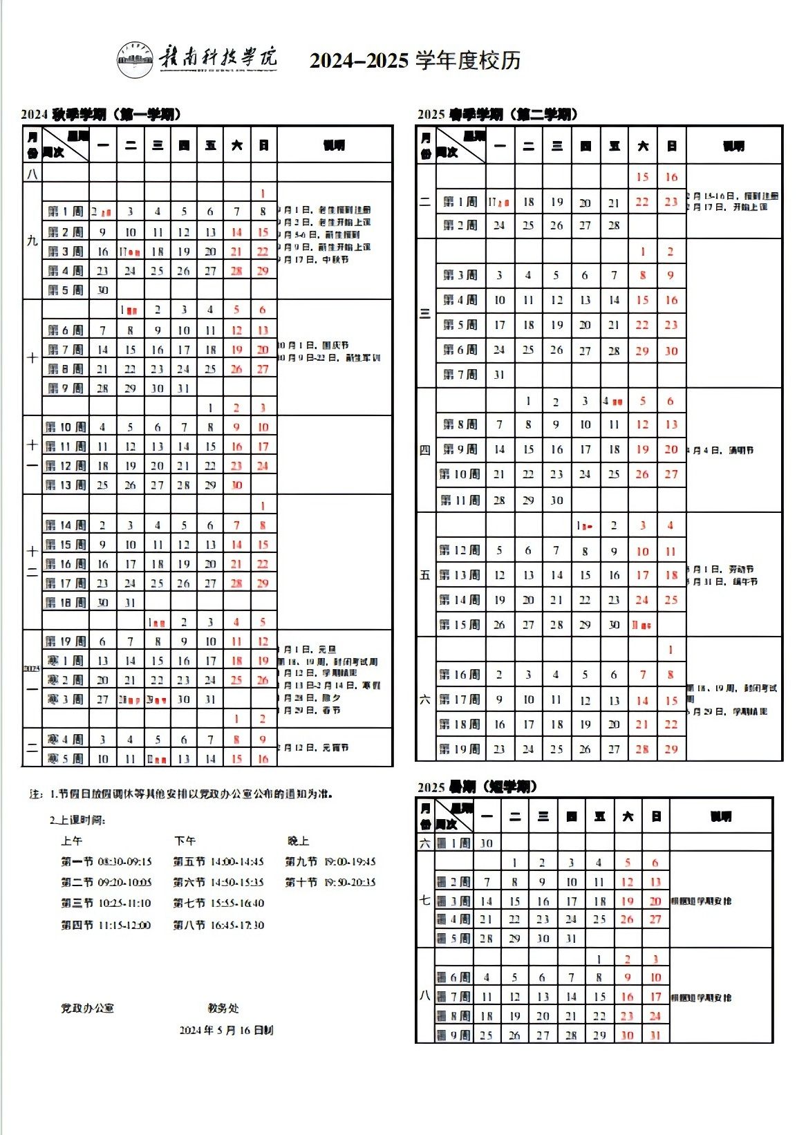 赣南科技学院2024-2025学年度校历