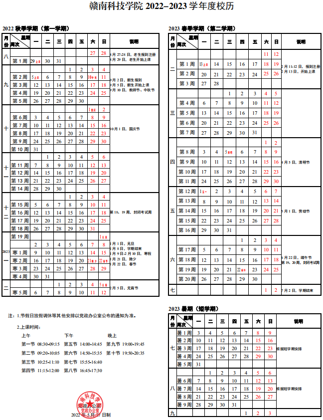 赣南科技学院2022-2023学年度校历