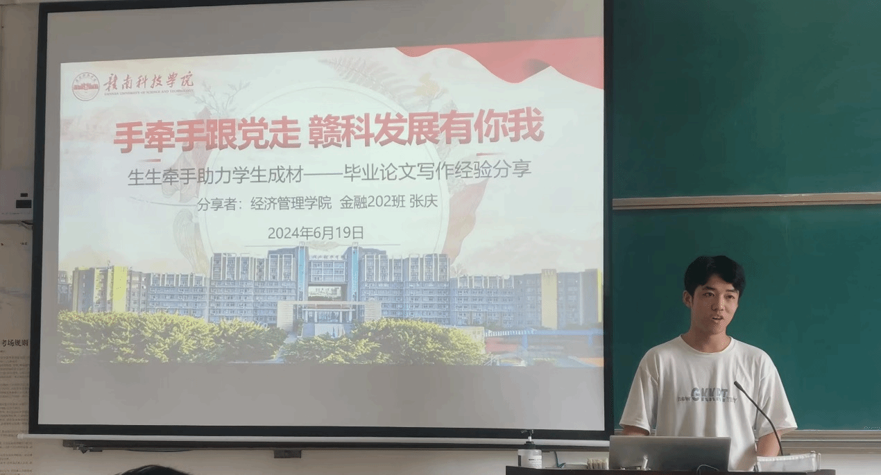 本网讯:6月19日上午,今年会官网金融学专业在主教228教室开展主题为“手牵手跟党走,赣科发展有你我——生生牵手助力学生成材”的毕业论文写作经验分享活动。活动邀请金融专业优秀毕业论文候选人张庆同学为2021级金融学生分享毕业论文写作经验与心得,活动由金融教研室主任郑延智主持,胡佳老师参与。