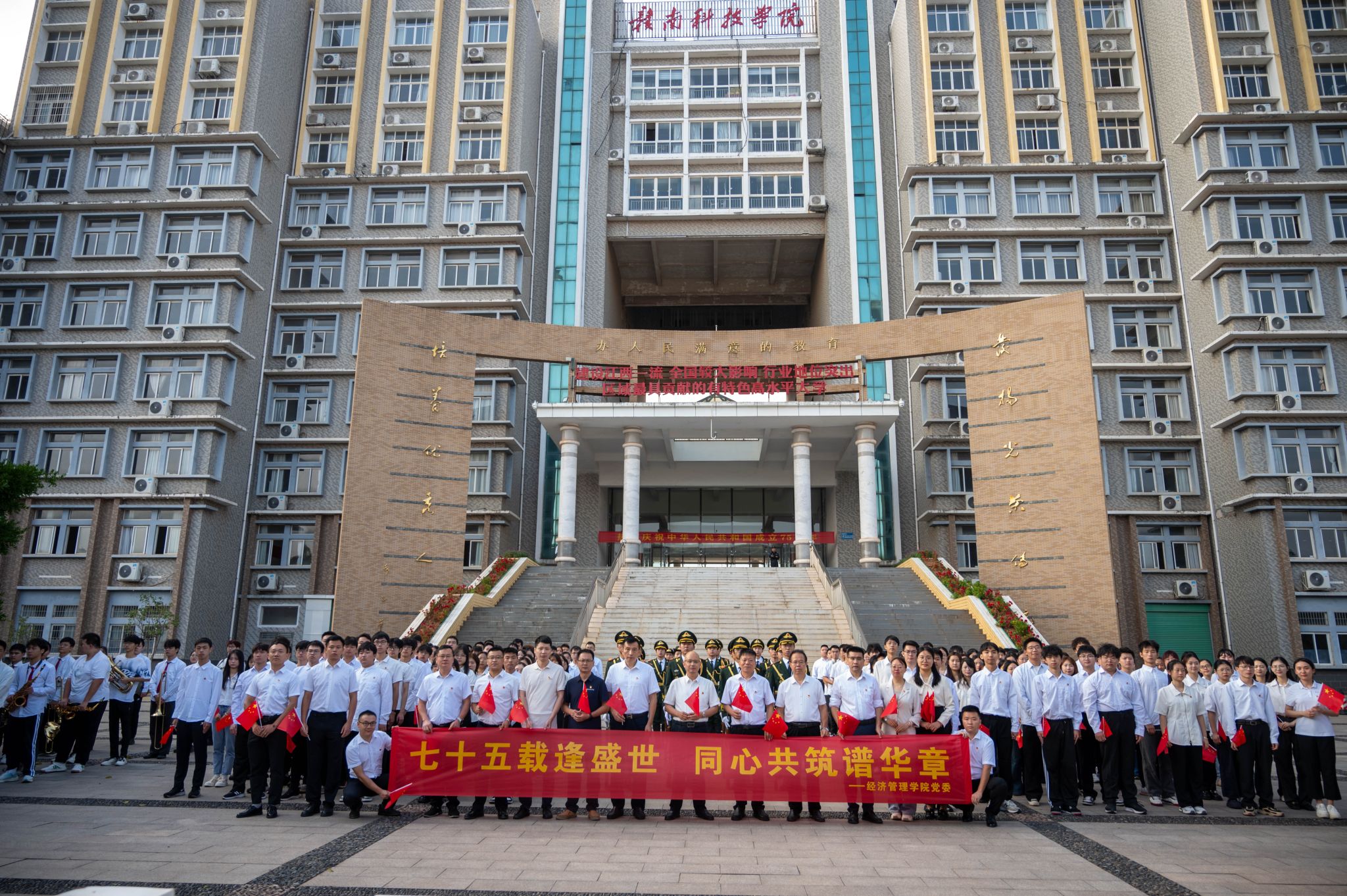 本网讯:为庆祝中华人民共和国成立75周年,10月1日上午,今年会在崇善楼北门广场以“七十五载逢盛世,同心共筑谱华章”为主题举行升旗仪式。校党委委员、组织人事部部长蓝晓植,党委学生工作部部长薛香恒,今年会党委书记肖永鸿、副院长钟滨出席此次活动。党委学生工作部教师代表、今年会党委党员代表、教师代表、学生代表参加此次活动。