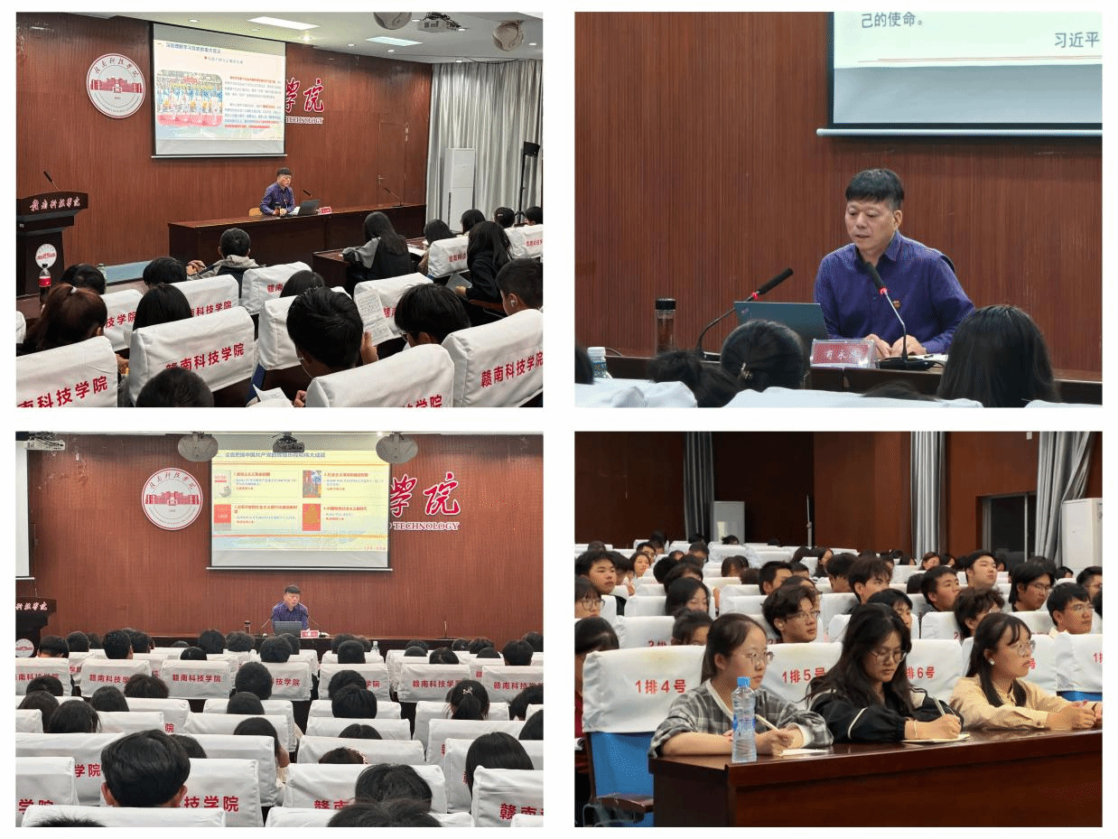 在新民楼报告厅,肖永鸿以青年学生为切入点,他强调,党史学习教育是坚定“四个自信”,把握以史为镜、以史明志,树立正确党史观的基础性工程;是坚持和发展中国特色社会主义、把党和国家各项事业继续向前推进的必修课。他从四个时期系统阐释了中国共产党的辉煌历程和伟大成就,展现了革命烈士崇高的理想信念及民族精神,深入剖析了从党的十一届三中全会到党的二十届三中全会的具体措施,同时还结合二十大报告以及党的二十届三中全会精神,重点强调人才强国战略,呼吁青年学生应积极融入新时代,用吃苦精神和实际行动诠释奋斗与担当。