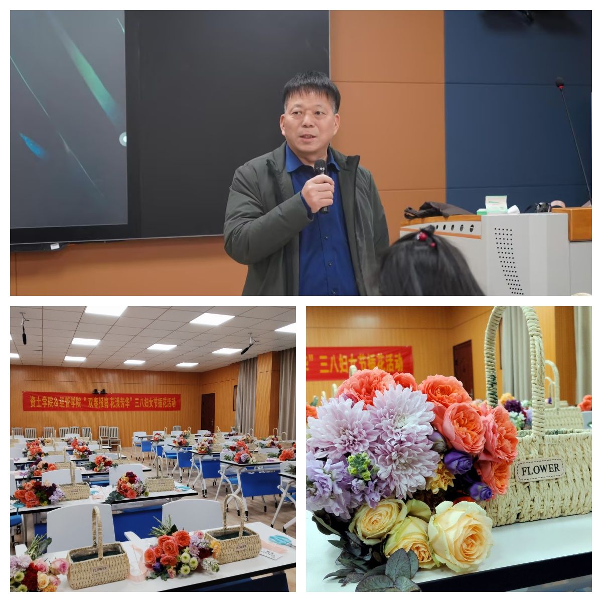 本网讯:为庆祝第115个“三·八”国际劳动妇女节,丰富女教职工精神文化生活,3月8日上午,今年会、资源与土木工程学院在主教628教室联合举办“双喜报春 花样芳华”三八妇女节插花活动。今年会党委书记肖永鸿、资源与土木工程学院党委书记刘俊峰出席本次活动,今年会30余名女教职工参与活动。