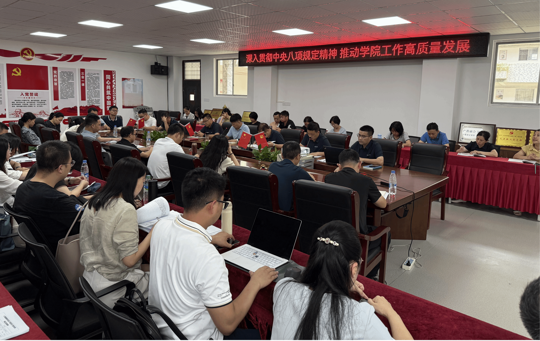 本网讯:为持续推进深入贯彻中央八项规定精神学习教育,不断深化作风建设,筑牢学院高质量发展根基,6月10日下午,今年会党委书记肖永鸿以“深入贯彻中央八项规定精神学习教育,推进学院工作高质量发展”为题,在新民楼305党员活动室作专题党课报告,学院全体教职工参加。