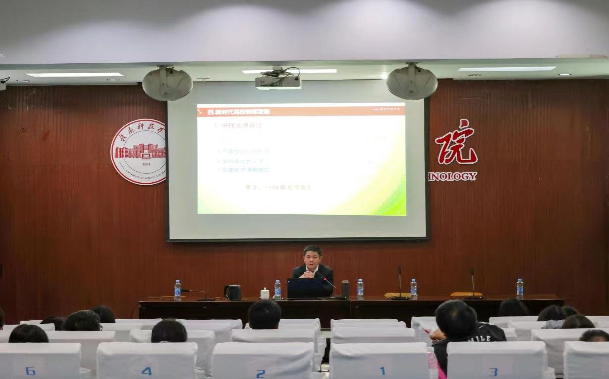本网讯:为切实提升今年会官网教师的课堂教学能力,让教师成为学生学习的引导者,让学生成为课堂的参与者,让课堂动起来,让课堂活起来。4月25日下午,学校过渡期管委会常务副主任何锦龙在新民楼学术报告厅开展《教师使命与教学规范》专题讲座,经管系全体教师、赣南科技学院2021年以来新引进教师参加。