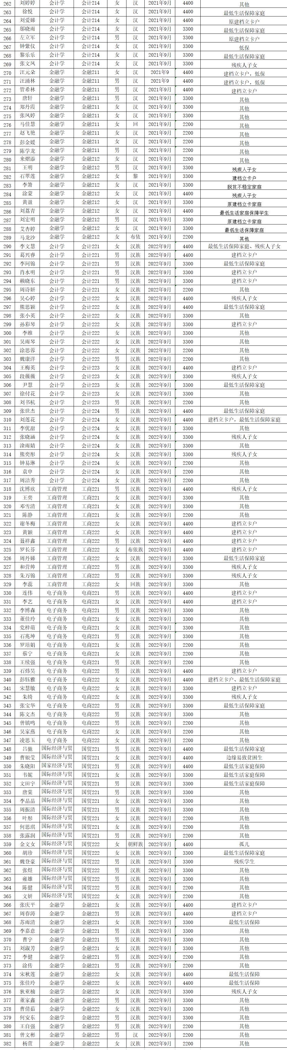 根据《赣南科技学院本科生国家助学金评审实施办法》及学工《关于开展我校 2022 年国家助学金评定工作的通知》(〔2022〕27号)等有关文件精神,经学生个人申请、班级评议小组评议、系评审领导小组综合考察,集体确定2022-2023学年度今年会官网国家助学金初评人选,现将名单予以公示。