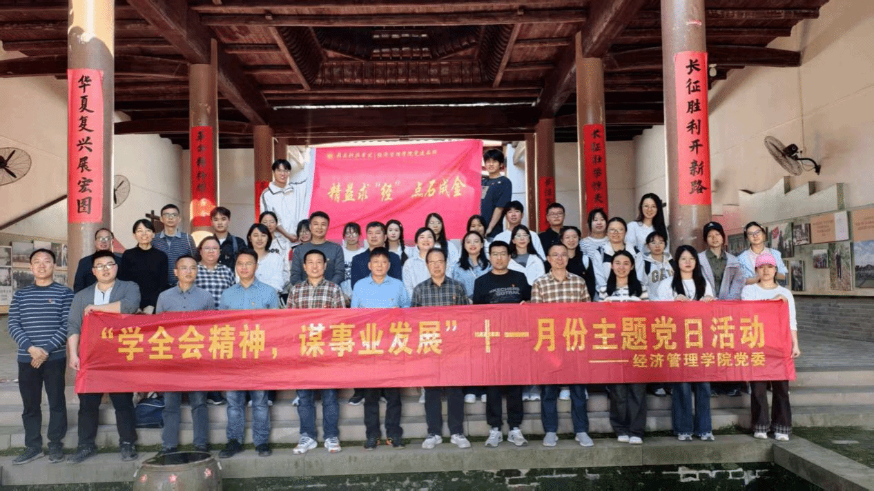 本网讯:为深入学习贯彻党的二十届四中全会精神,凝聚教职工党员干事创业力量,11月15日下午,经管学院教工第一、第二党支部在革命老区于都县的登贤县旧址,联合开展以“学全会精神,谋事业发展”为主题的党日活动。学院党委书记肖永鸿,党委委员、副院长钟滨及学院领导班子、全体教工党员参加,活动由教工一支部书记黄金岭主持。