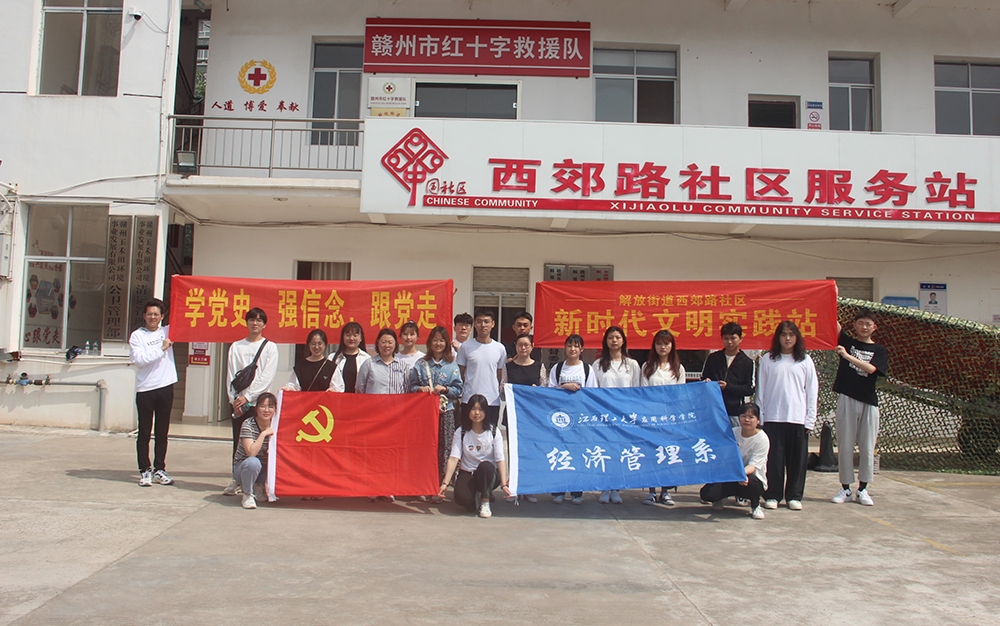 本网讯:为深入党史学习教育,激励我系青年学生学史明理、学史增信、学史崇德、学史力行,5月4日前夕,经济管理系团总支、学生会,本科生党支部前往西郊路社区联合开展了“学党史、强信念、跟党走”党史宣讲进社区活动。经济管理系团总支书记、本科生第一党支部书记王博文,经济管理系本科生第二党支部书记谢晖慧出席此次活动,经济管理系学生干部以及学生党员代表参加此次活动。