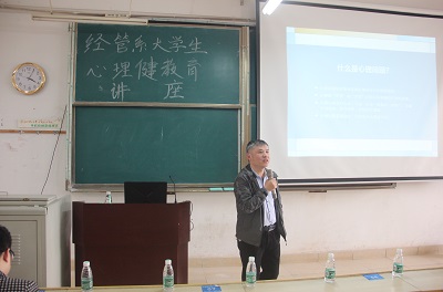本网讯:为了普及心理健康知识,增强同学们的自我心理调适能力,3月26日下午,经济管理系在主教Z1D1开展了以“大学生常见心理问题的识别和疏导”为主题的心理健康教育讲座。本次讲座由赣南医学院大学生心理咨询中心专任教师、国家二级心理咨询师、江西省心理咨询与治疗专业协会理事万德智主讲,经济管理系副主任梁文学、学院保卫办干事谢嘉泉出席本次会议,经济管理2018级、2019级、2020级各班班长、团支书、心理委员以及2020级寝室长参加此次会议。