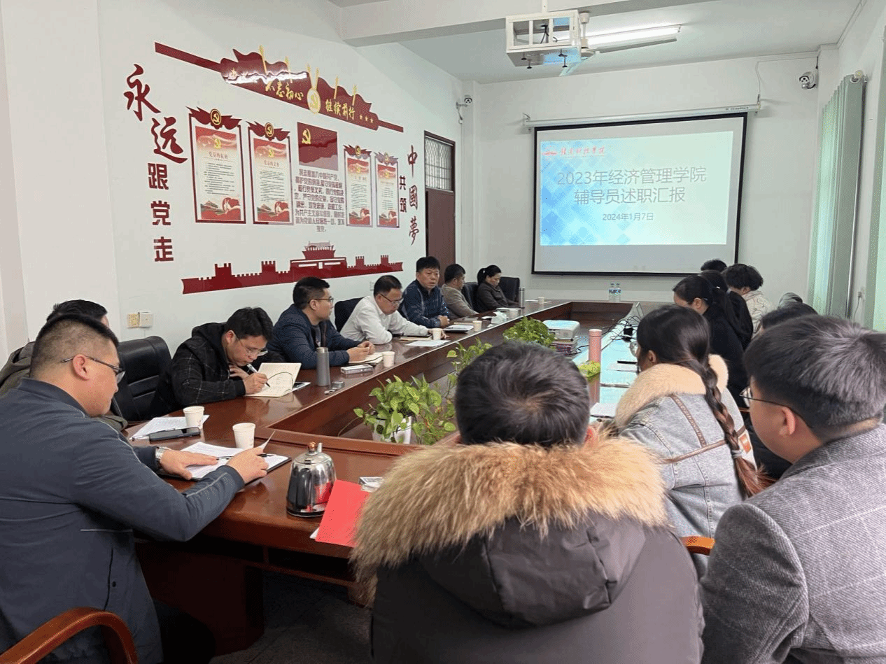 本网讯:为促进辅导员之间的工作交流,持续深化辅导员队伍建设,推动学生工作管理水平高质量发展,经济管理系于1月7日下午在2教309会议室开展2023年度辅导员工作述职大会。今年会党委书记肖永鸿,系领导班子钟滨、王波、梁文学以及各教研室主任担任评委,今年会全体辅导员参加本次述职。