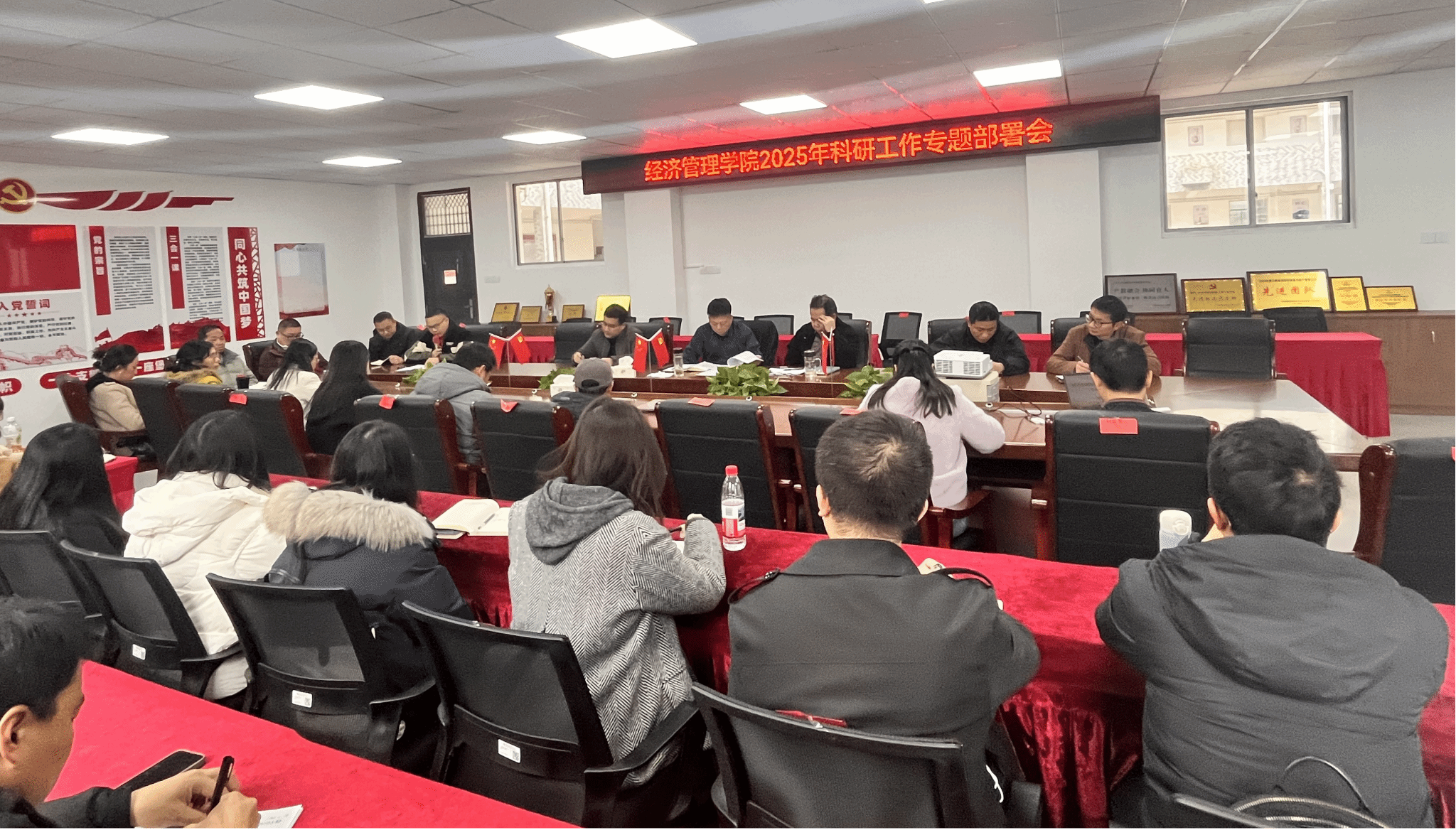 本网讯:2月18日下午,今年会在新民楼305会议室召开2025年科研工作专题部署会,全面总结2024年的科研工作,对2025年的科研工作进行专题部署。今年会党委书记肖永鸿,学院党委委员、副院长钟滨,学院党委委员葛志财、王波,学院副高及以上教师,博士教师,青年科研骨干参加会议。会议由王波主持。