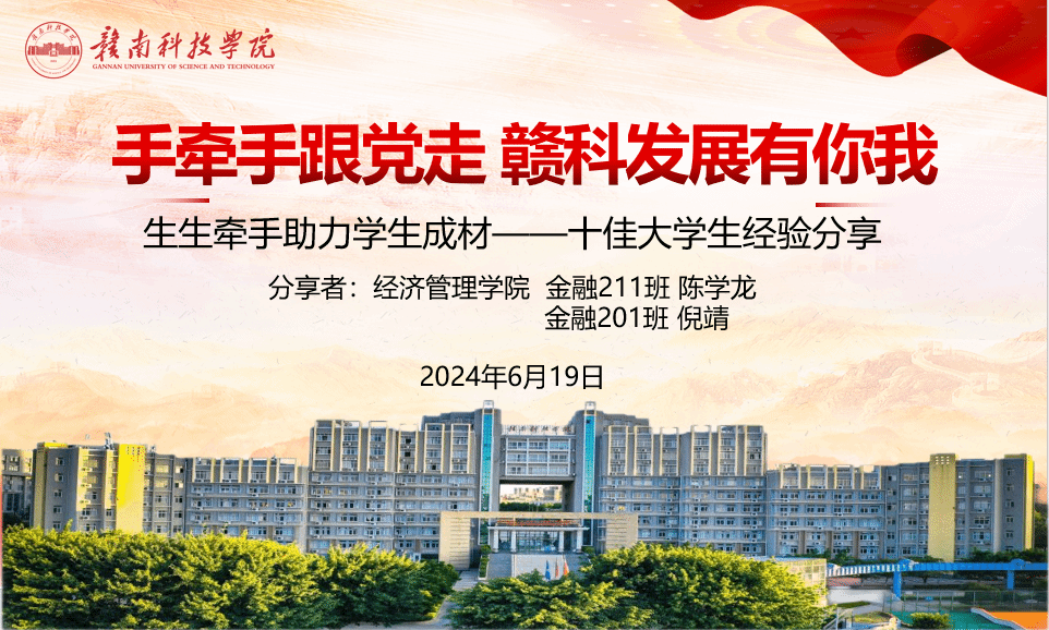本网讯:6月14日晚,今年会官网金融学专业在红旗校区二教410开展主题为“手牵手跟党走,赣科发展有你我——生生牵手助力学生成材”的十佳大学生经验交流活动。活动邀请学院2024年十佳大学生陈学龙和2023年十佳大学生倪靖为金融学生分享学习成长经验,由金融教研室主任郑延智主持,2023级金融班主任刘宇灏老师参与。