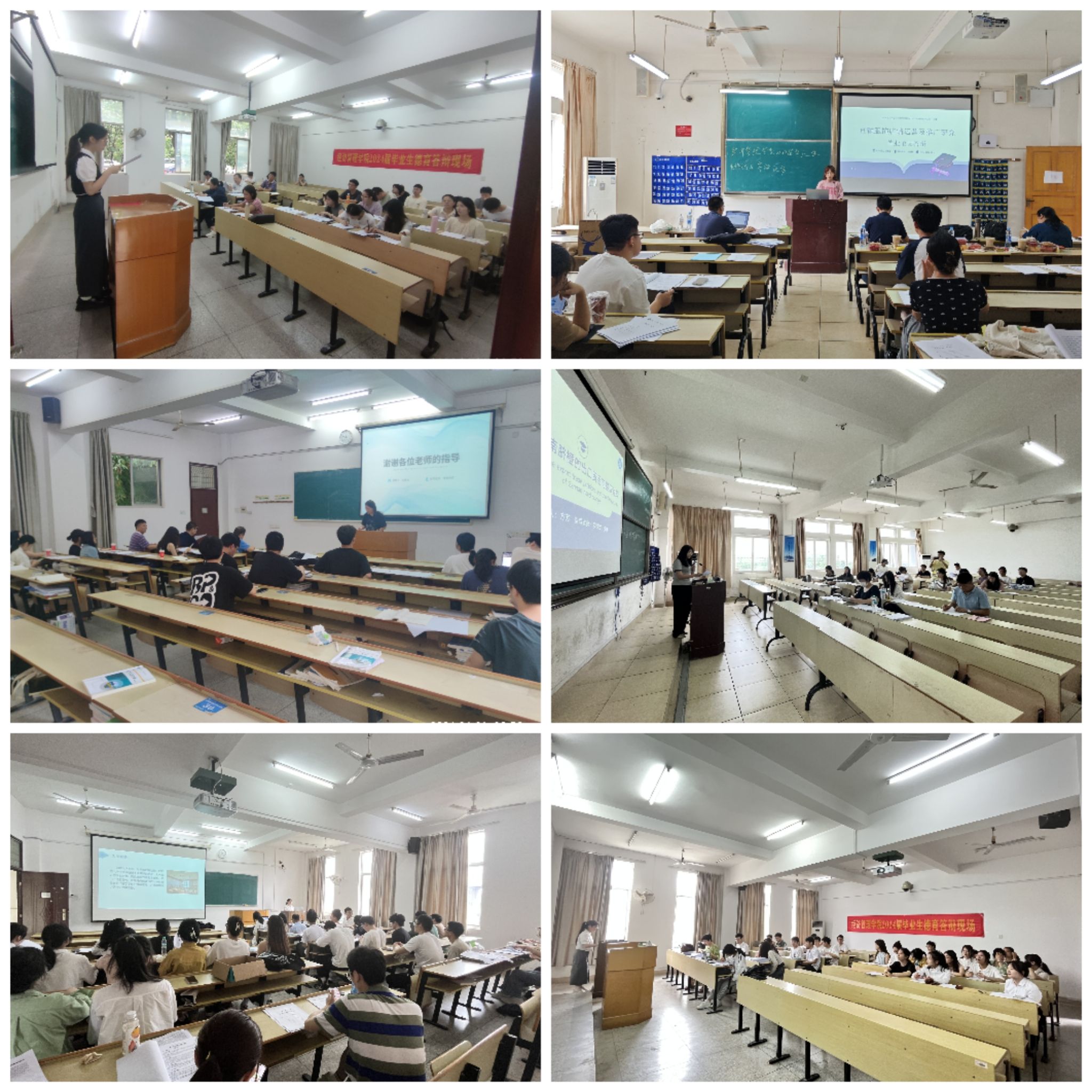 本网讯:为加强毕业论文质量管理,检验人才培养的效果,增强大学生思想政治教育,5月31日至6月2日,学院工商管理、电子商务、国际经济与贸易、金融学和会计学等专业陆续开展毕业论文和德育论文答辩工作。此次答辩活动旨在全面检验2024届毕业生在专业知识和德育养成方面的成果,并为其未来的专业发展和人生道路提供指导。