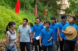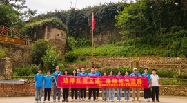 第二天,蓝鸢实践服务队队员们参观了岗上村大坝游击队遗址,在讲解员生动地描绘下,在一幅幅珍贵的历史照片、一件件斑驳的历史实物前,大家仔细聆听讲解,深切感悟革命先辈坚定信念、无私奉献的崇高风范。随后,实践服务队在此开展了主题团日活动。队员们回顾入团誓词,讲述着一个个红色故事,让大家感受到了正是这些肩负着伟大使命的革命先辈们,以一种势不可挡的力量,走完了如此漫长的道路。