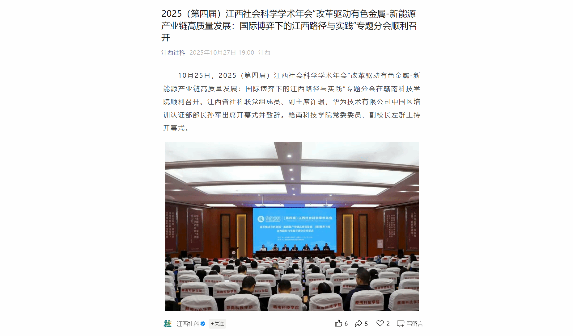 【江西社科】赣南科技学院能源金属产业研究院承办2025(第四届)江西社会科学学术年会专题分会