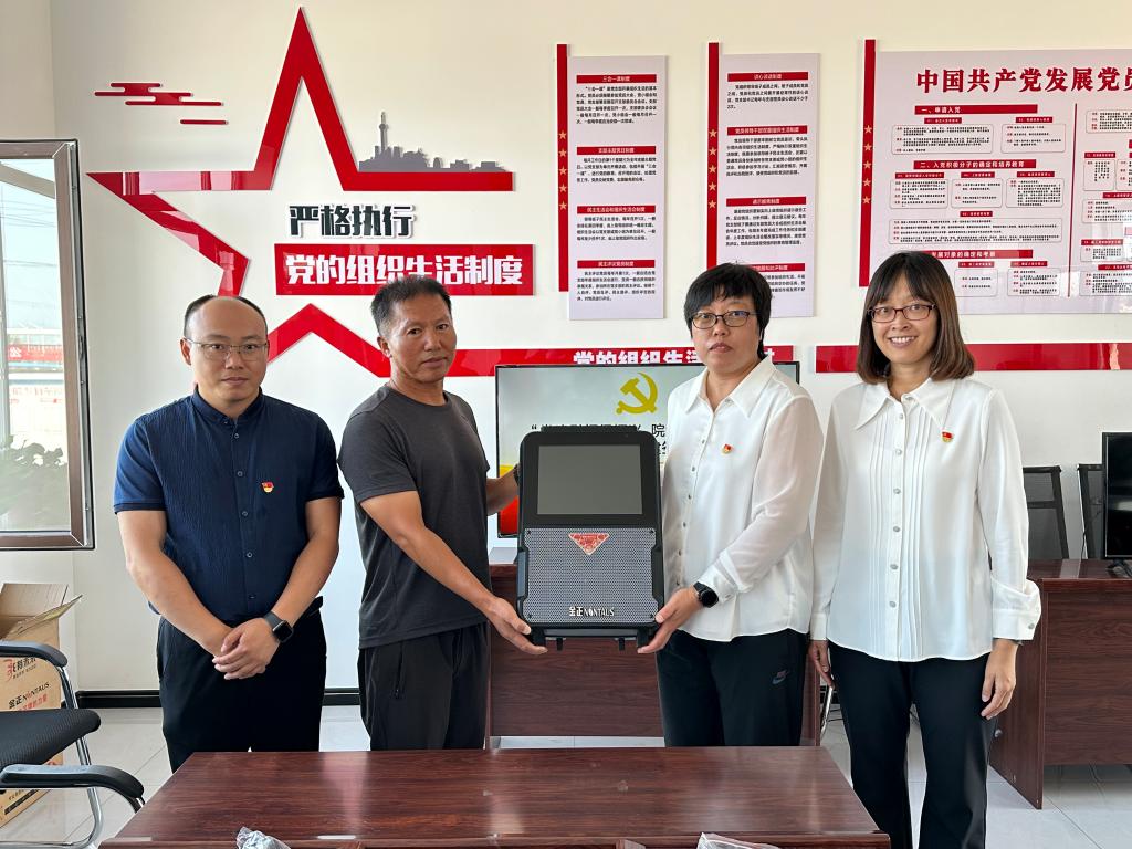 球王会体育官方网党委书记李哲和党委副书记刘阳向小塔子村赠送蓝牙音响。