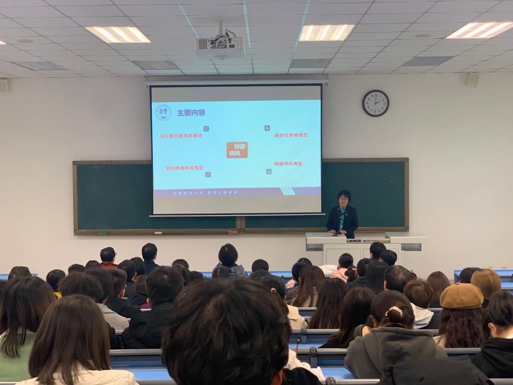 为深入推进学院新时代师德师风建设工作,着力培养政治素质过硬、业务能力精湛、育人水平高超的教师队伍,球王会体育官方网于11月4日在南校区播馨楼104教室召开师德师风建设专题报告会,邀请辽宁省教学名师、制药工程与环境科学系主任侯晓虹教授作专题讲座。院领导班子成员、学院教师参加了会议,报告会由院党委书记李哲主持。