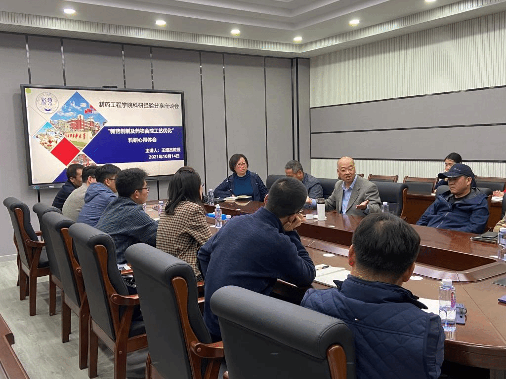 会上,王绍杰教授做了题为《新药创制及药物合成工艺优化》科研经验分享,以“使命与担当”为主线生动讲述了自己近30年的科研生涯,分享了从药物合成工艺优化到创新药物研发的科研经验,并结合自己两个一类新药的研发经历阐述了如何积累铸就“科学直觉”。王绍杰教授激励青年教师坚持正确的科研梦想。他谈到,个人的梦想与国家的梦想是紧密相连的,作为个体,我们要有社会担当,以国家、民族利益为使命,时刻坚守作为一名药学人肩上的责任和使命,做一个有创新思维的药学科研人;建议青年教师深入企业并了解企业需求,科研工作应具有实用性和社会价值。王绍杰教授多年来的探索精神、科研素养及人格魅力让与会教师感到由衷的钦佩。
