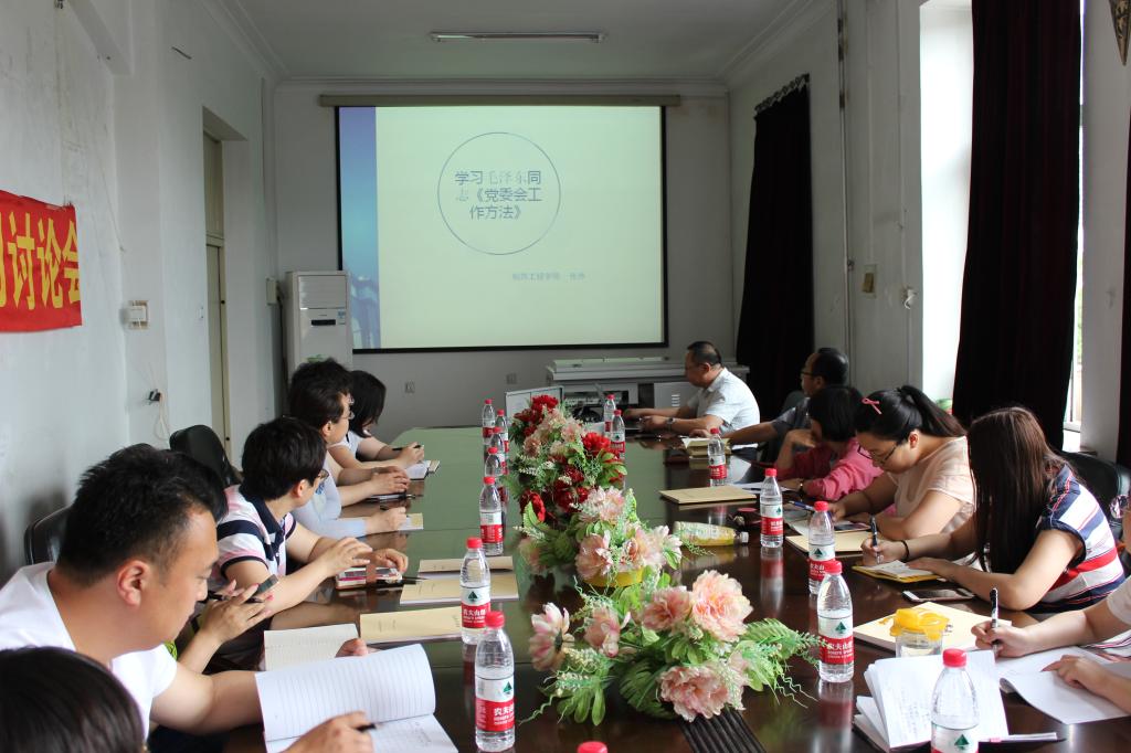 会议首先传达了学校党委《意见》精神,然后按照专题一的要求进行了集中学习讨论。张伟书记结合自己的学习体会,以PPT的形式,做中心发言,交流了学习毛泽东同志《党委会的工作方法》、《中国共产党党组工作条例(试行)》、《中国共产党普通高等学校基层组织工作条例》等的体会。在学习《党委会的工作方法》中,张伟从时代背景、内容解读、重大意义、工作要求等四个方面交流了学习体会;在学习《中国共产党党组工作条例(试行)》中,张伟从背景和意义、简要解读与释疑、条例目录等三个方面交流了学习体会;在学习《中国共产党普通高等学校基层组织工作条例》中,张伟以“以改革创新精神推进高校基层党建工作”为题,从条例出台的背景和特点、修订后条例的几大特点、贯彻落实条例的几点思考等三个方面交流了学习体会。通过学习讨论,与会人员对有关党规有了进一步深刻认识,表示在今后基层党建工作中一定要认真贯彻落实。