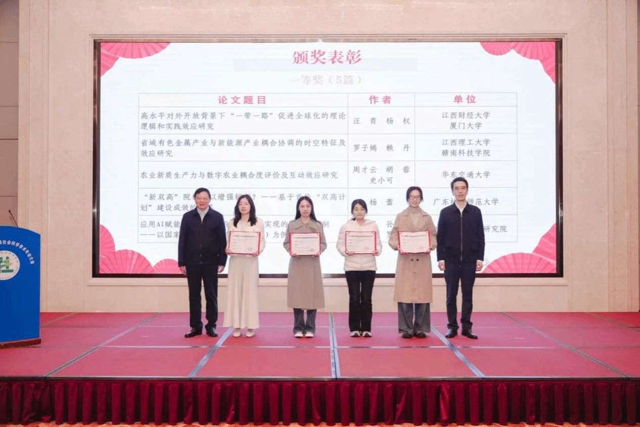 本次江西社会科学学术年会由江西省社会科学界联合会主办,是全省哲学社会科学领域规模大、规格高、影响广的学术交流盛会。年会优秀论文评选经过专题分会承办单位推荐、专家评审、省社科联党组会审定,最终确定30项获奖项目,其中一等奖5项、二等奖10项、三等奖15项。我校能源金属产业研究院有色金属产业发展团队成员共同撰写的论文,凭借对能源金属产业链发展的深入剖析与创新见解,成功斩获6项奖项。